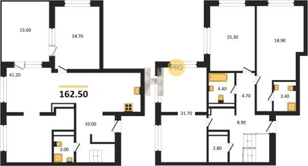Площадь от 124.9 м2